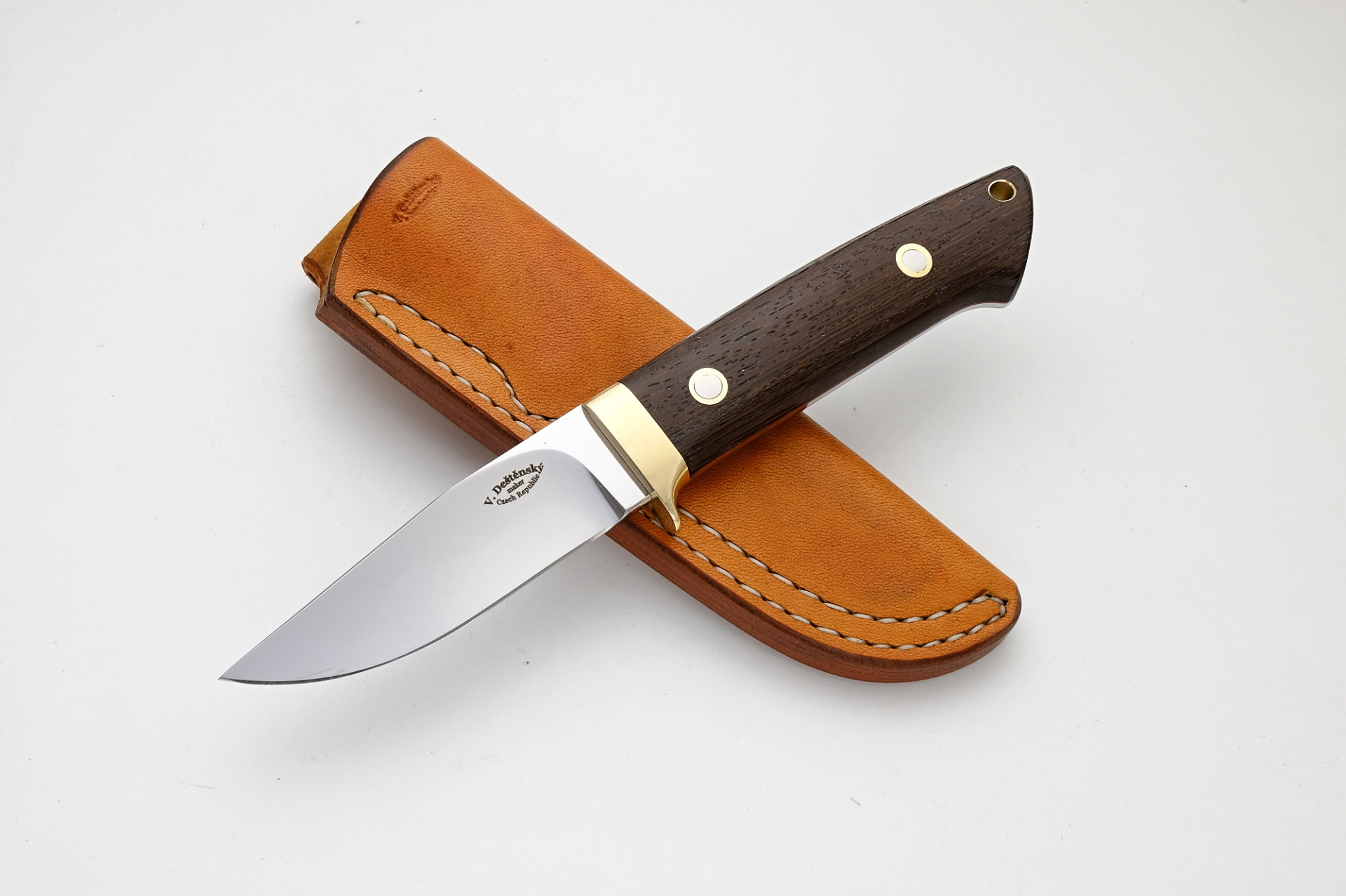 Ocel (steel) : N690Co, 60HRc. 4,4mm. (0.18 ") Celková délka (total length) : 210mm. (8.27 ") Délka čepele (blade length) : 95mm. (3.74 ") Výbrus (grind) : dutý (hollow) Rukojeť (handle) : Micarta green Záštita (guard) : nerez (stainless steel) Loveless šrouby (bolts) : nerez (stainless steel) Pouzdro (sheath) : ručně šité z hovězí kůže - pravák (Cow leather for right-handed)